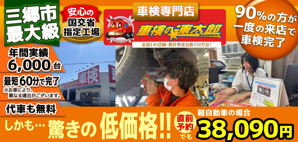 三郷・草加・吉川・流山・松戸・八潮・越谷エリアトップクラスの車検実績