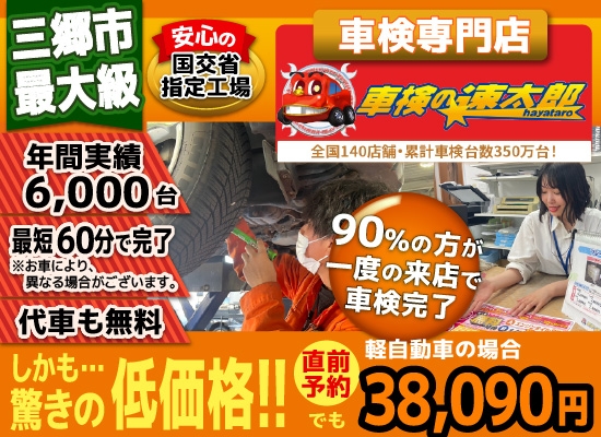 「車検の速太郎」三郷インター店は、短時間車検を基本としておりますが、